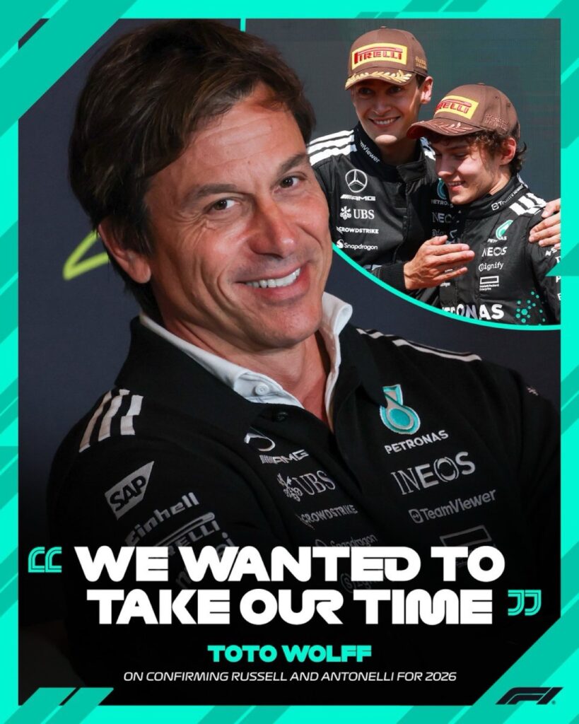 In the fast-paced world of Formula 1, where driver rumors swirl as quickly as the cars on track, Mercedes-AMG Petronas Team Principal Toto Wolff is in no rush. The Austrian boss revealed that he plans to take his time confirming the team’s 2026 driver lineup, stressing that patience remains key in shaping Mercedes’ future.