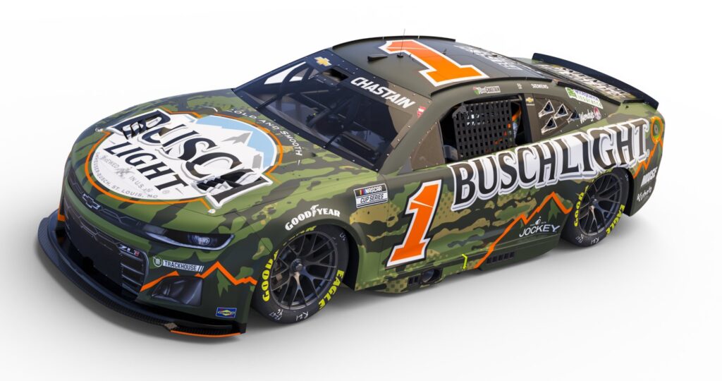 NASCAR Cup Series driver Ross Chastain will bring a unique look to the high banks of Talladega Superspeedway this weekend as he pilots the No. 1 Busch Light Chevrolet featuring a special Busch Light Hunting paint scheme.