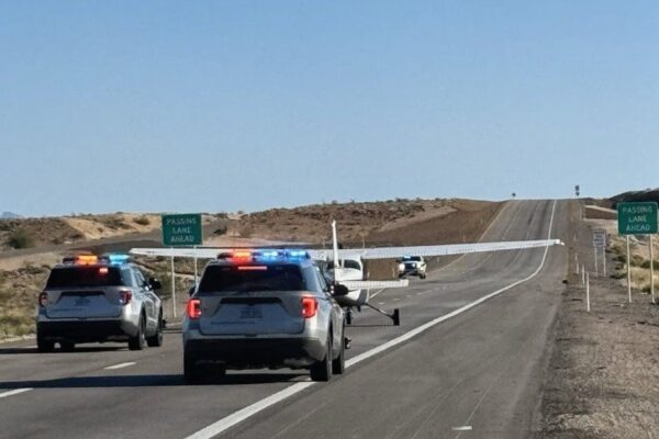 A Cessna Skyhawk made an emergency landing on I-15 northeast of Las Vegas this morning. Everyone survived.